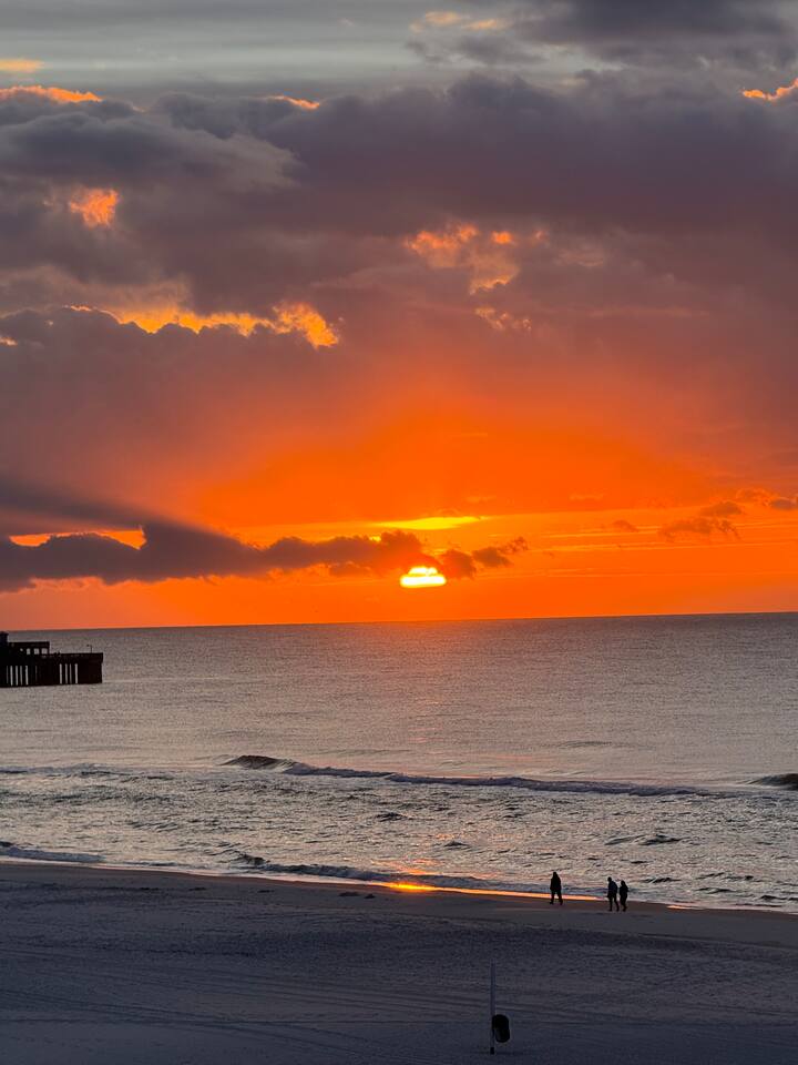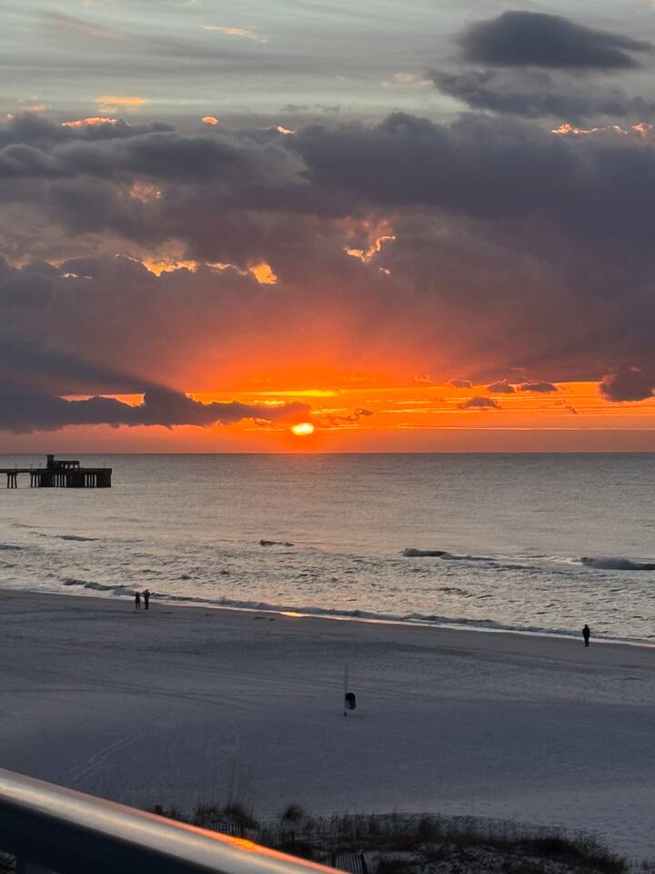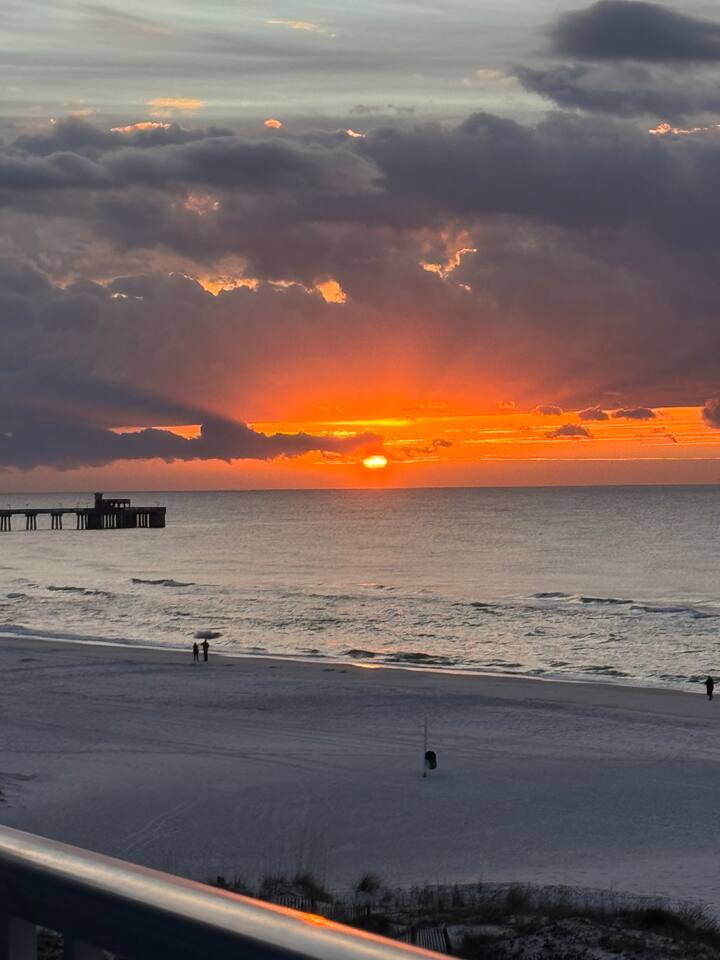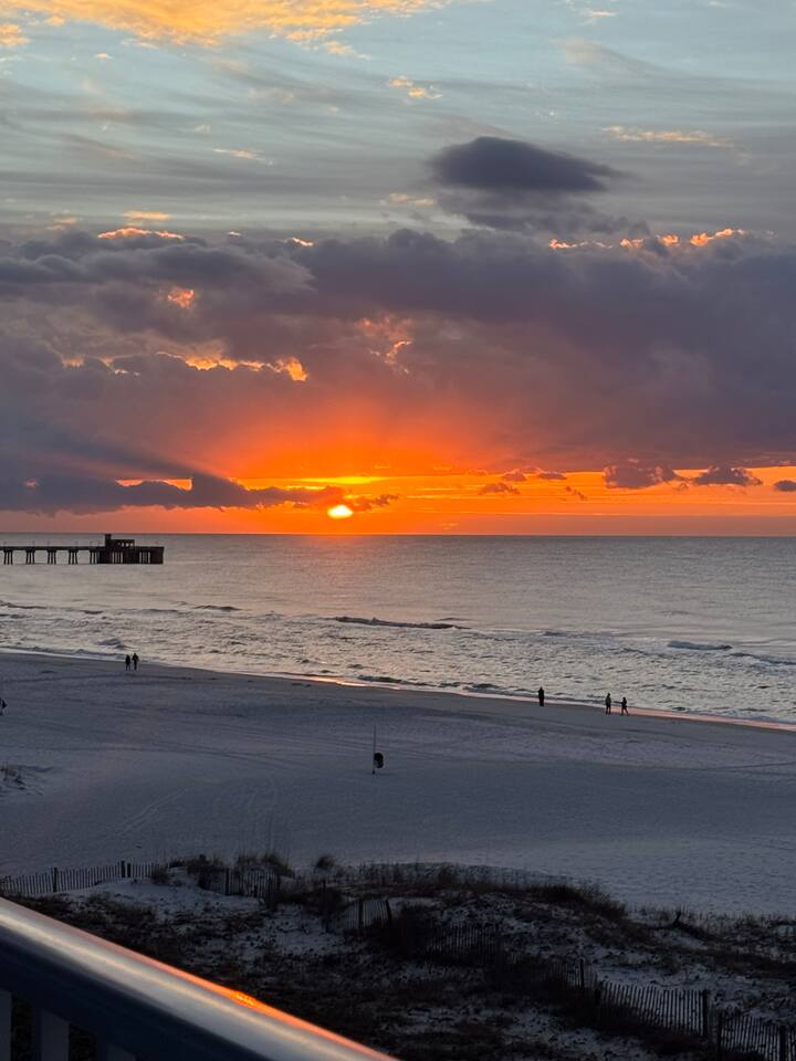 Your view will be breathtaking! Spectacular corner private balcony with extended gulf views. Your beachfront Condo is just steps away from the sand. Complimentary parking included in reservation ($30 Value!). Sleeps 8. Sleeping Arrangements: Bedroom 1: 1 King bed, TV and a private bathroom. Bedroom 2: 1 Queen bed, TV and a shared bathroom. Hallway: Twin-over-twin bunk bed. Sofa in the living area pulls out to a queen-sized bed. Hidden pool right on the beach. Located in the heart of Gulf Shores, walking distance to The Hangout and much more. Newly renovated unit in spring of 2026! You will wake up to breathtaking views of the sunrise on the Gulf Coast from your private balcony. You can enjoy quiet morning coffee and immerse yourself in the peaceful mood rising from the gulf waves and waters. Your condo was renovated in the spring of 2026 by the new owners. Your kitchen window has a stunning view looking down the beach. The corner unit will also have a window allow you to look down the beach while you are eating dinner or playing games. The master bedroom has a comfortable King-sized bed. The second bedroom has a queen size beds. Kids will love the bunk beds built into the hallways. The queen sofa make the condo sleep 8 for the larger families. Once you are finished playing on the beach, cool off in the pool just steps away from the beach. You have so many good restaurants to eat at during your stay in Gulf Shores!! You are walking distance (0.9 miles) from The Hangout! You can walk to De Soto's Seafood is a short 1.0 mile walk. There are too many to list, but we will give you our best recommendations when you book with us! Westwind is a low-density condo complex right on the beach. The building will never feel crowded with other guests, like many larger complexes do! The kitchen is fully stocked and includes a Keurig as well as a drip coffee maker. Keep up with all your shows with three large smart TV’s, one in each bedroom and the other in the living room. A stackable washer/dryer is provided along with a starter of detergent. A starter of paper products is provided for your stay as well as dish and laundry soaps. Additional Information: * 4th Floor * Beach Service - Ike’s Beach Service * No Smoking Allowed * No Pets Allowed Guest access Guests have access to the entire unit. Westwind prohibits smoking anywhere in the unit or on the balcony. No parties, No Pets. Smoking/Pet/Party Violations incur $200 fee each occurrence. Must have one person in the unit 25 or older, ask about exceptions to this rule!